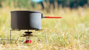 - カセットコンロでお湯を沸かす