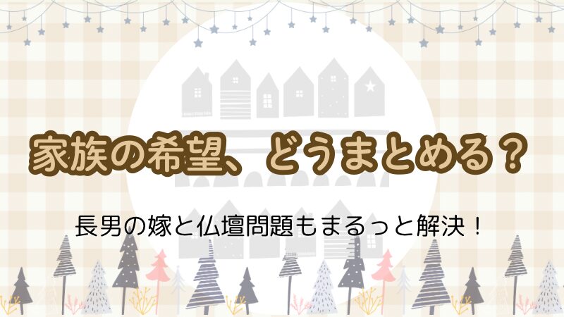 【長男の嫁と仏壇と家づくり】家族の希望をどう詰め込むか?